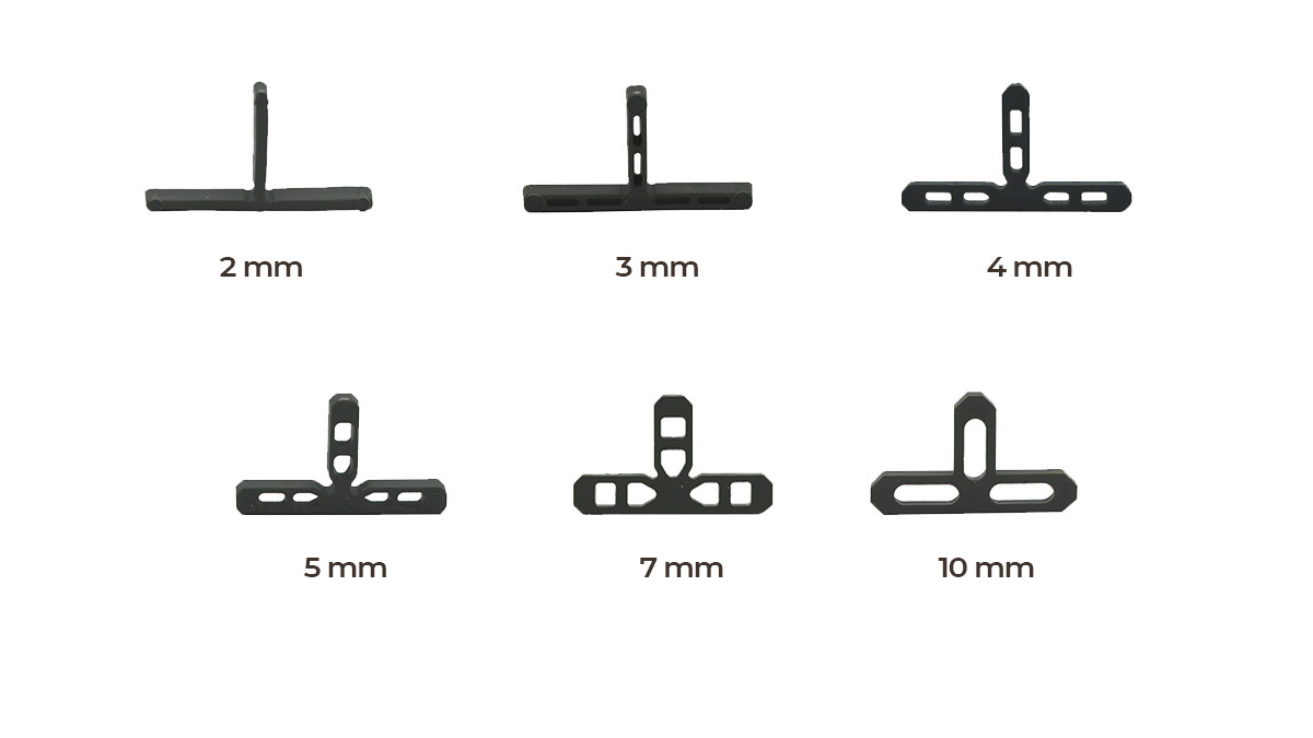 I distanziatori a “T” sono strumenti essenziali per la posa di piastrelle e rivestimenti. Questi distanziatori garantiscono una distanza uniforme tra le piastrelle, facilitando un lavoro preciso e professionale. Sono disponibili in vari spessori per adattarsi a diverse esigenze di posa.